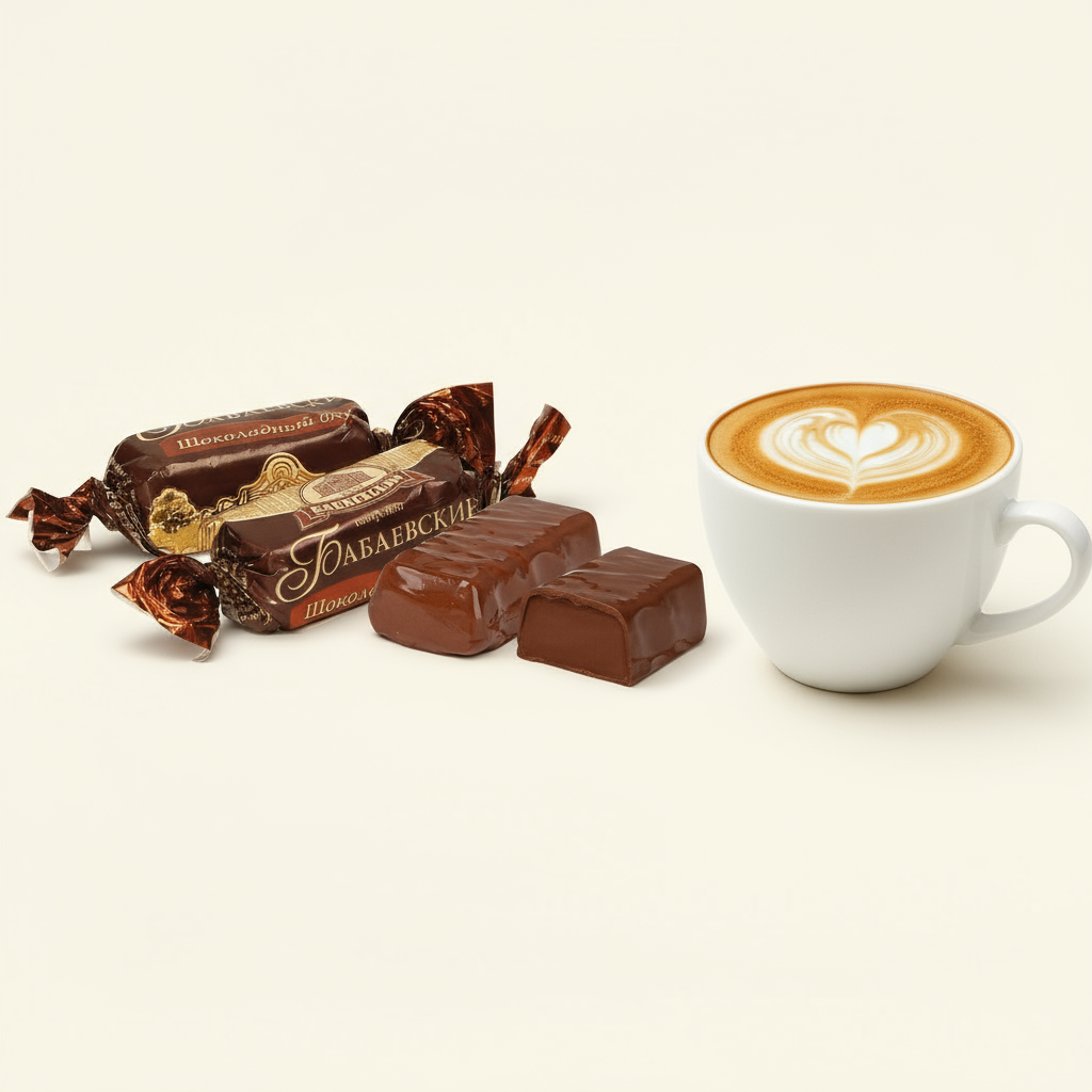 Rich chocolate-coated Babaevsky candies filled with crunchy roasted peanuts for a deep, satisfying flavor.